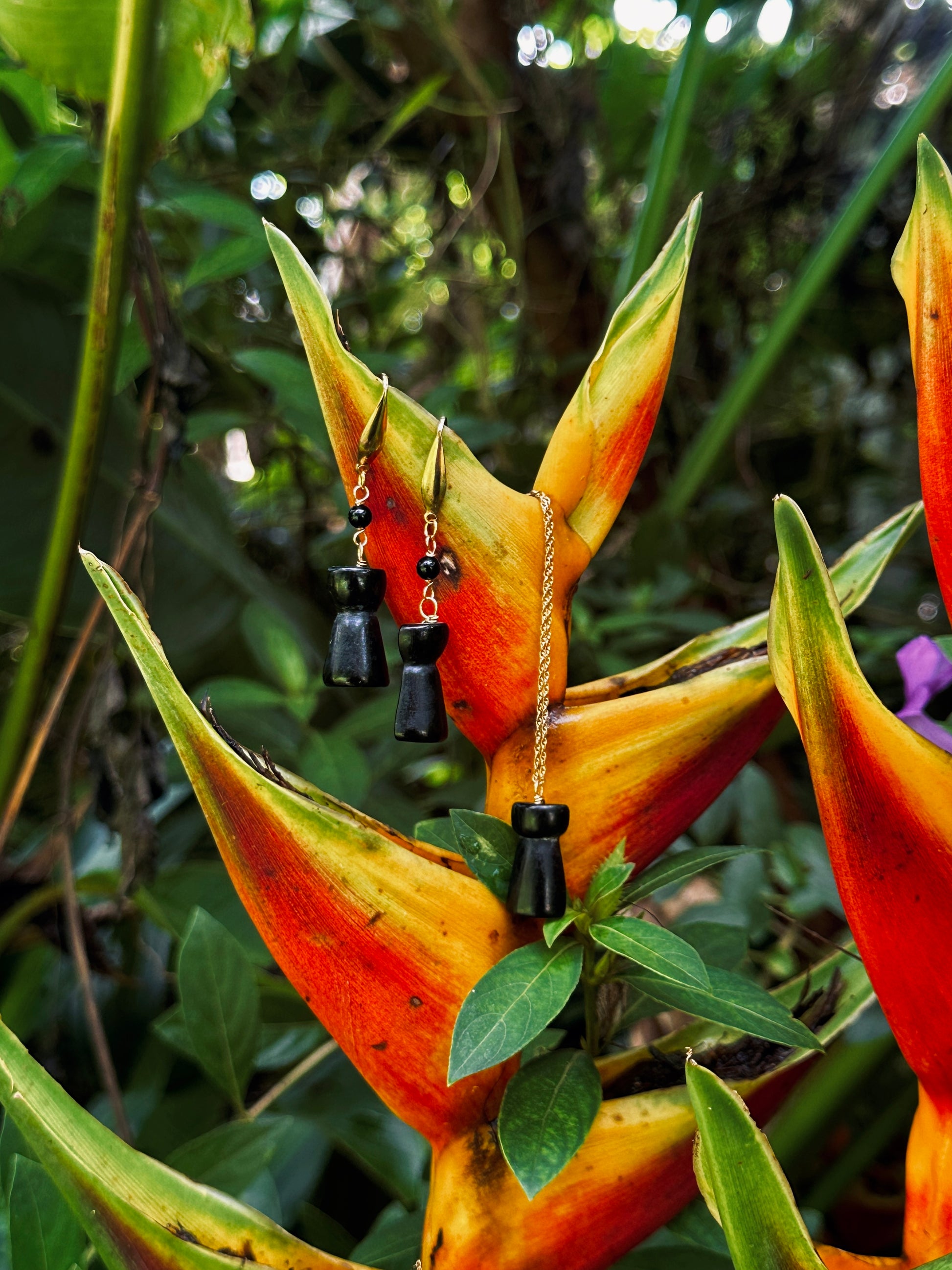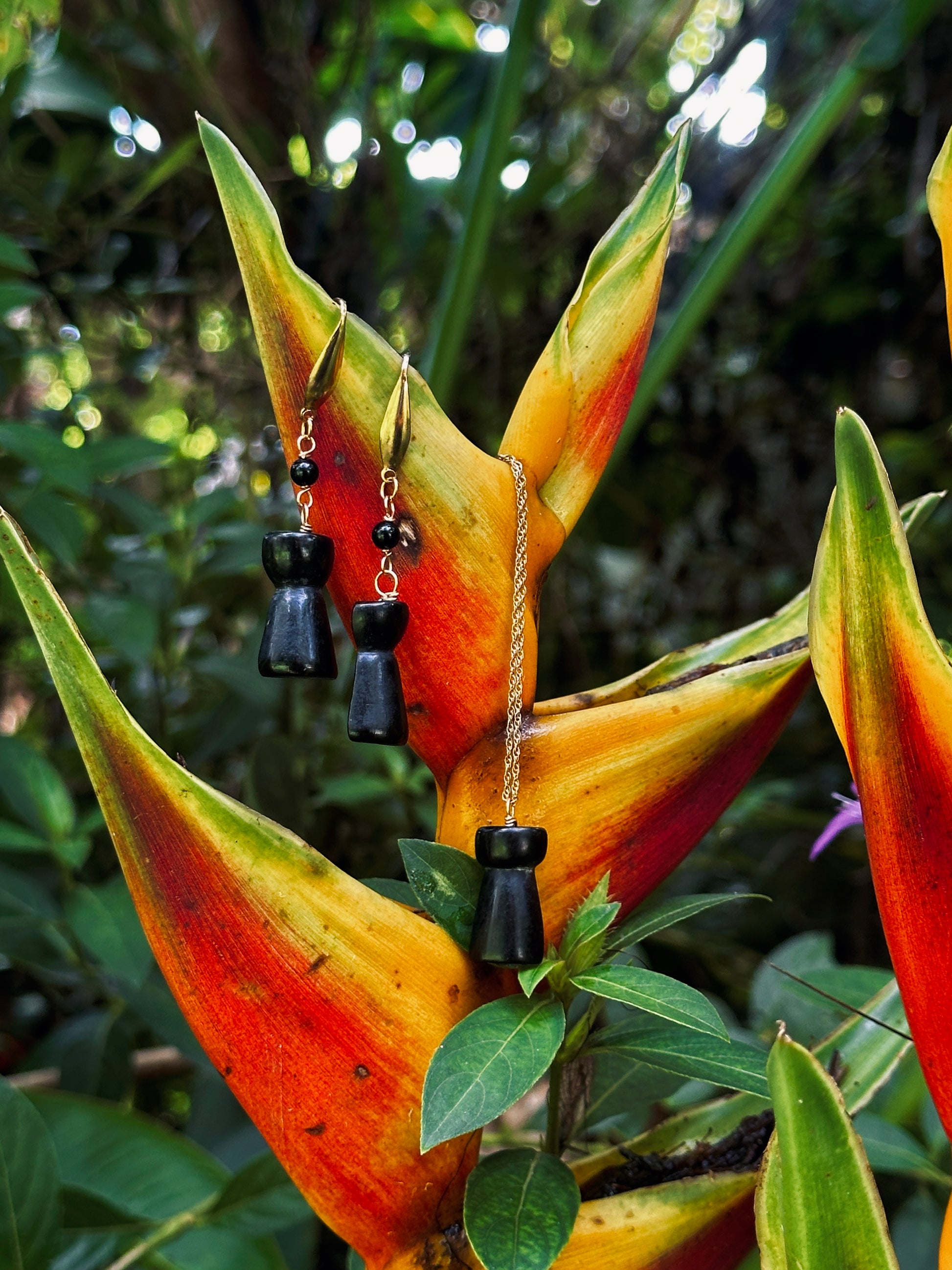 Matching pendant and earrings set handmade on island from carabao horn. Necklace comes standard on an 18k gold plated rope chain.