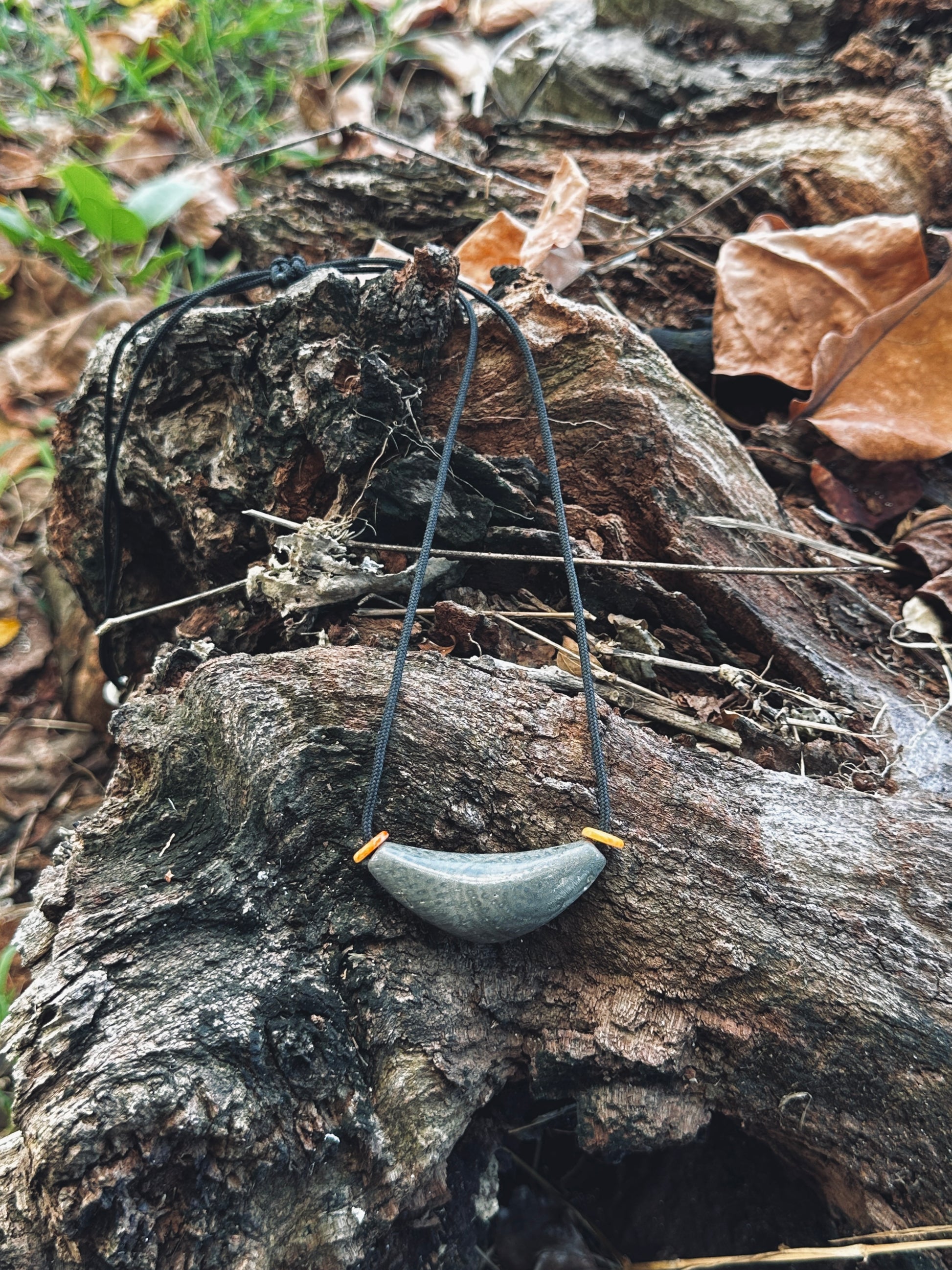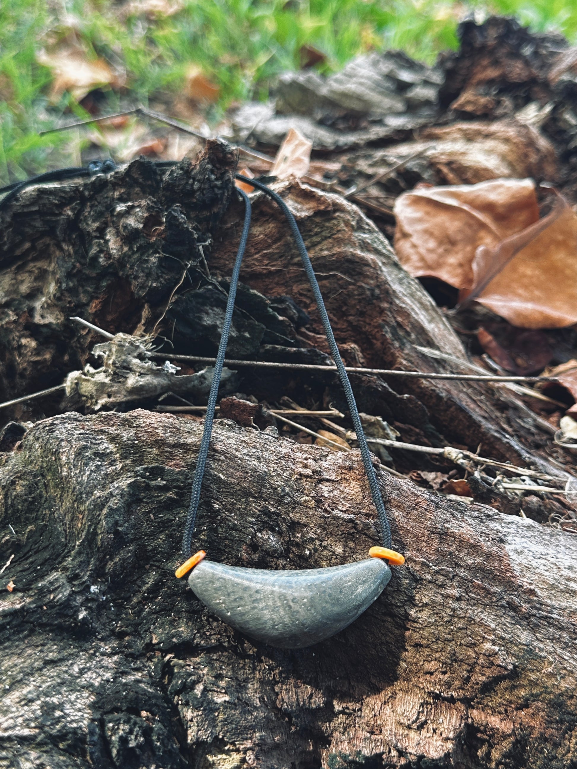 Neni sinåhi made by hand from beach combed Mariånas green coral. Accented with petite handmade orange Mariånas spondy side beads. Comes standard on the rugged m95 paracord.