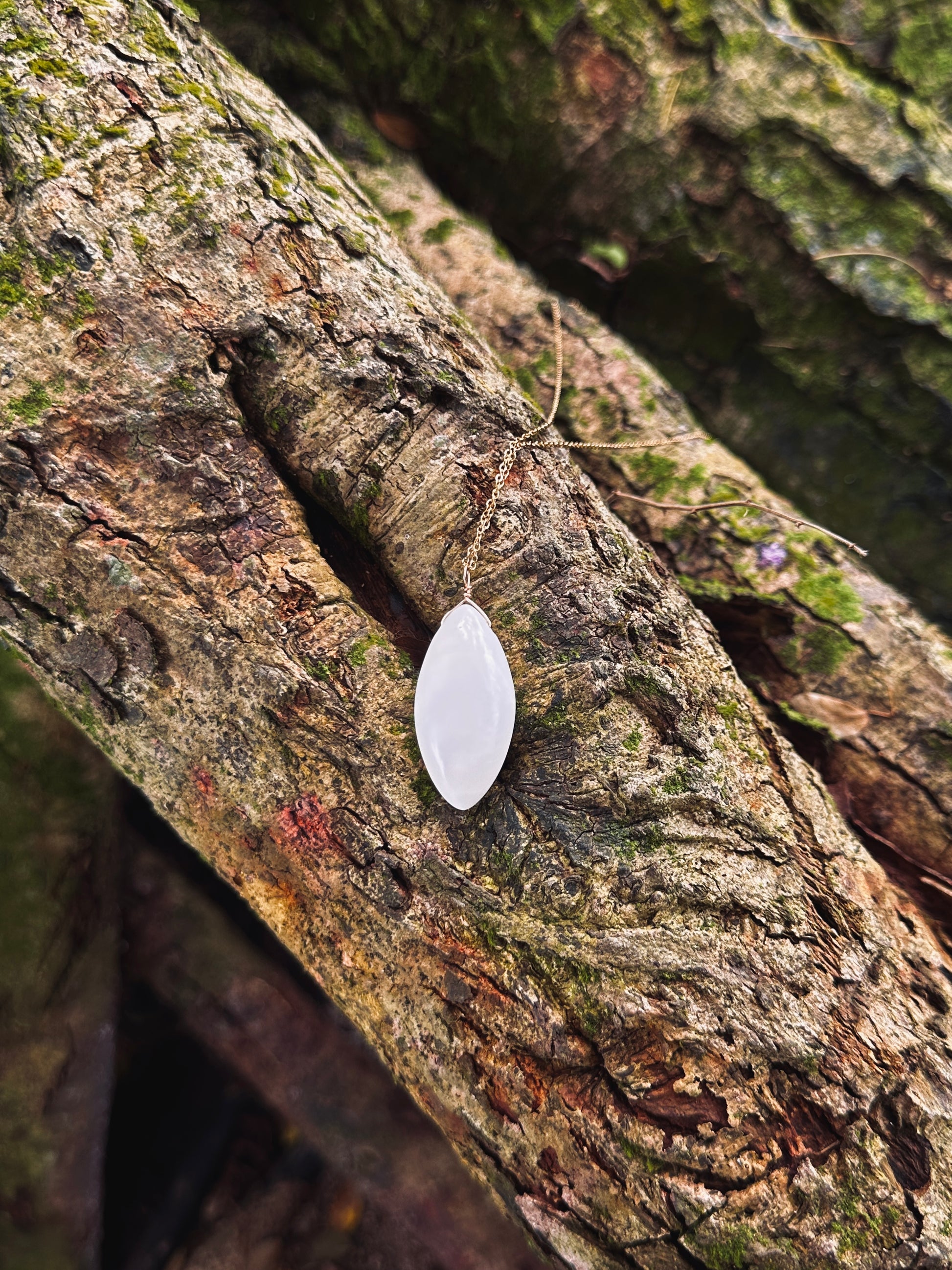 Slingstone shaped pendant made from Mariånas clam. Comes standard on an 18k gold plated chain.