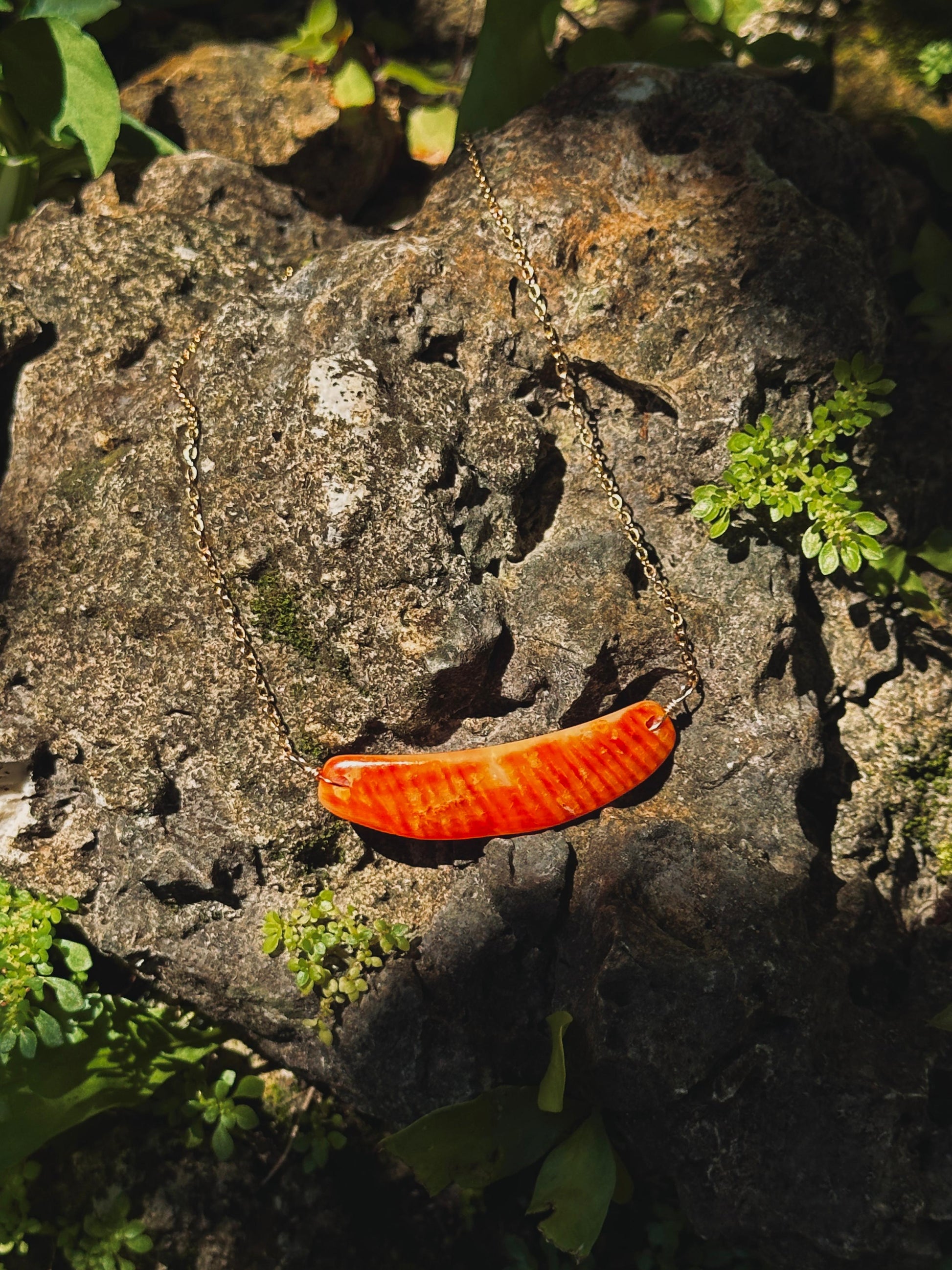 Sinåhi shaped pendant handcarved from Mariånas spondy. Comes standard on an 18k gold plated chain that is safe to be used in the ocean.