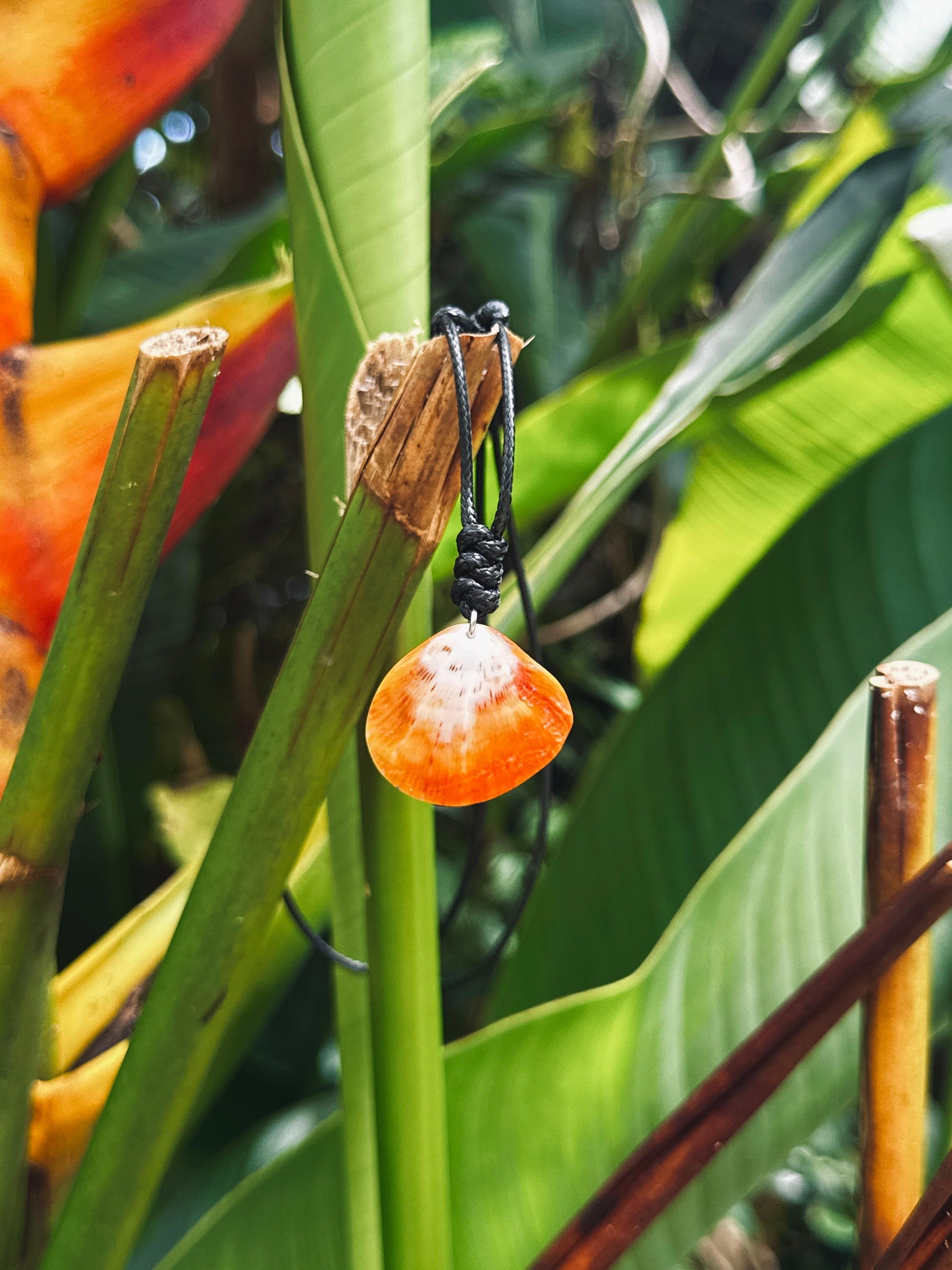 Naturally shaped Mariånas spondy pendant. Comes standard on an adjustable black cord.