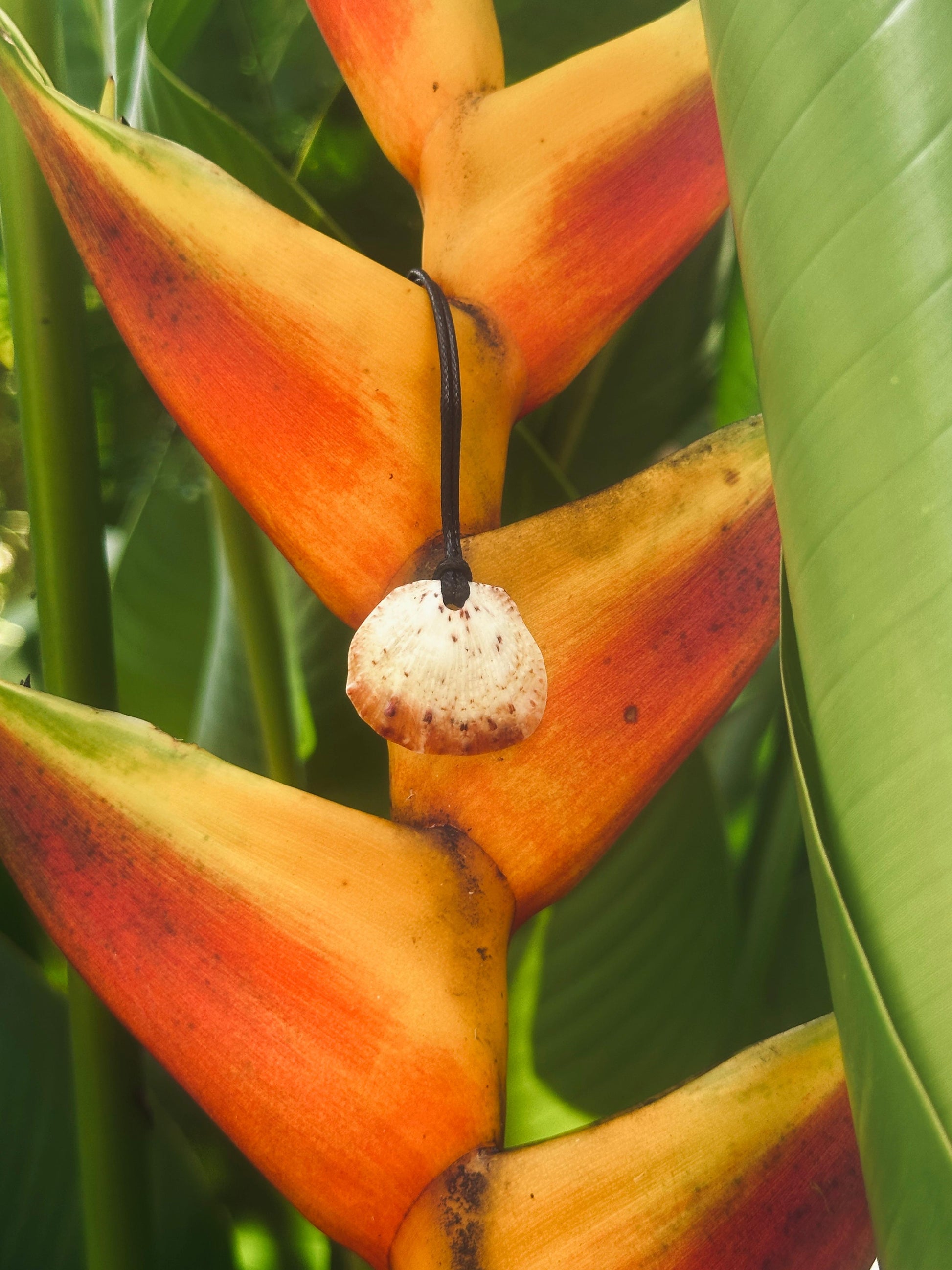 Pair of naturally shaped Mariånas spondy pendant necklaces. Comes standard on an adjustable black cord.